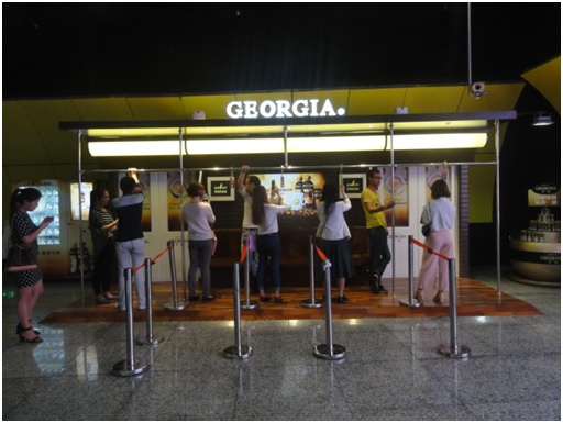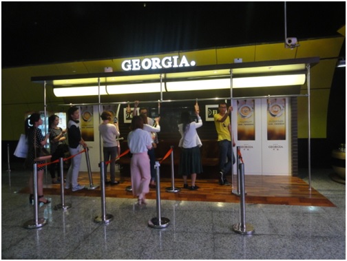 “乔雅列车”其实是海外销量第一的即饮咖啡饮料品牌“GEORGIA”乔雅咖啡在地铁站设置的虚拟地铁车厢,消费者可以进入车厢体验,通过首创的车厢互动手把装置与手机进行互联游戏,优胜者有机会获得免费赠饮、网购兑换券和“乔雅”振奋杯等奖品。“乔雅”独具一格的创意和体验,让众多匆忙赶在早晚高峰的白领们彻底放松和愉悦了一把。