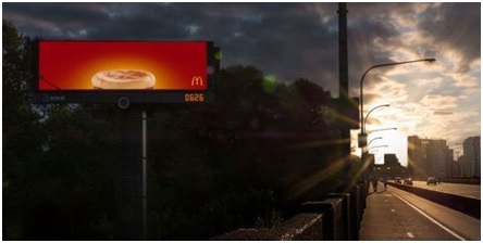 去年 2 月,它们还为麦当劳做过一个“麦满分和朝阳同步升起”的户外广告,思路如出一辙。