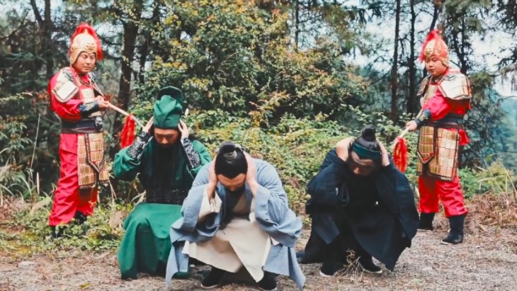 几年后,曹操再度征伐刘备,蜀国寡不敌众,兵败长坂坡,三人慌不择路去寻找军师在据点留下的汽车,却被埋伏的士兵抓捕。