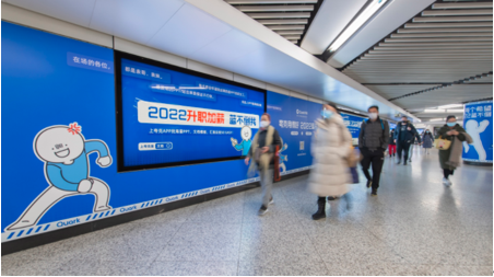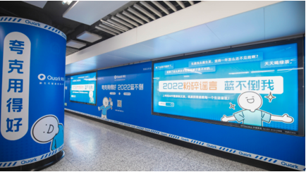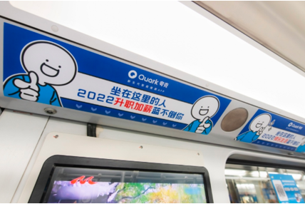 在2021年与2022年交替之际,夸克与IP@小蓝和他的朋友日常在上海徐汇区地铁站,携手承包一号线,将其打造成“2022蓝不倒号列车”。除此之外,夸克还在线上为用户准备了惊喜互动福利。有了夸克与小蓝的实力与乐天精神支持,2022年准点下班、升职加薪、学渣逆袭、拿下心仪offer、快乐生活……通通蓝不倒你!