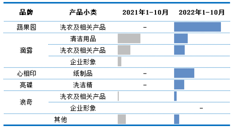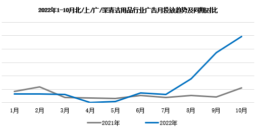 2022年1-10月清洁用品行业TOP5品牌广告投放及同期对比