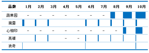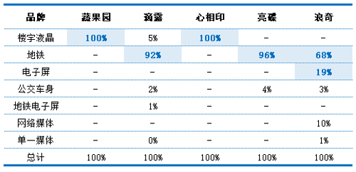 从媒体投放策略看,新客户蔬果园、心相印均大手笔投放线下分众楼宇液晶媒体,通过对北上广深四大经济主流城市的高频次投放,实现品牌引爆,挖掘出更持久的增长潜力。