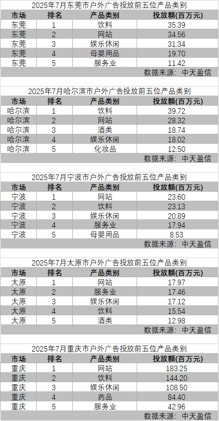 1、以上数据以中天盈信指定的收集范围为统计对象