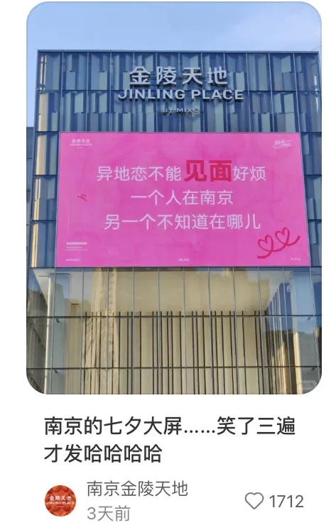 今天就是七夕节了,而当七夕+大屏,这几天,南京大屏文案,首先被刷屏了!