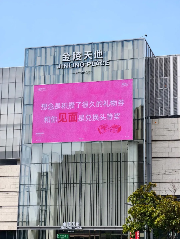 文案以“相见”和“碰头”为灵感,除了上述 “精神状态不详” 的 “神金质文案”外,南京大屏也藏着不少温柔暴击。