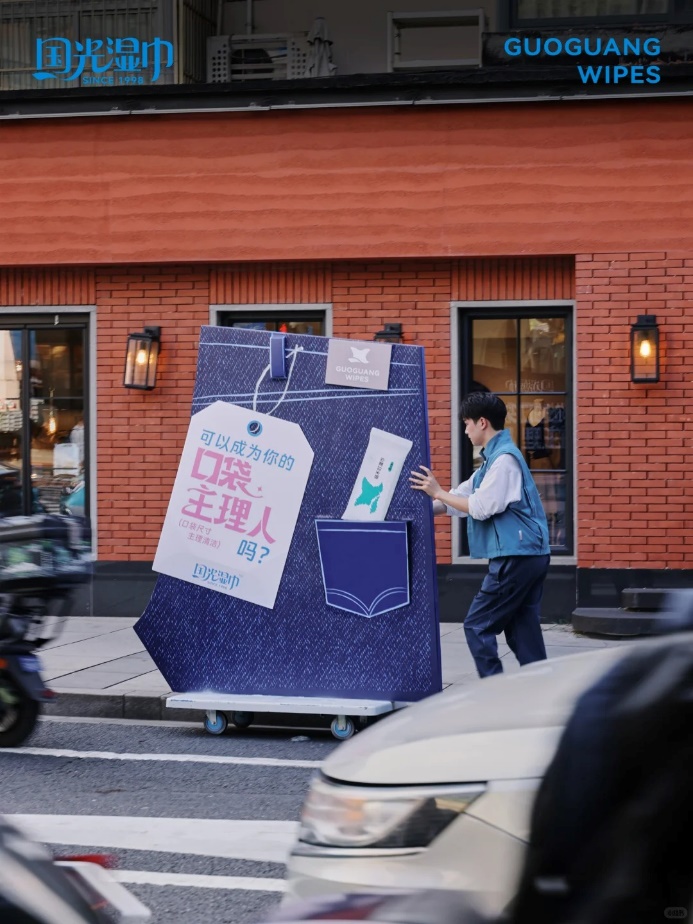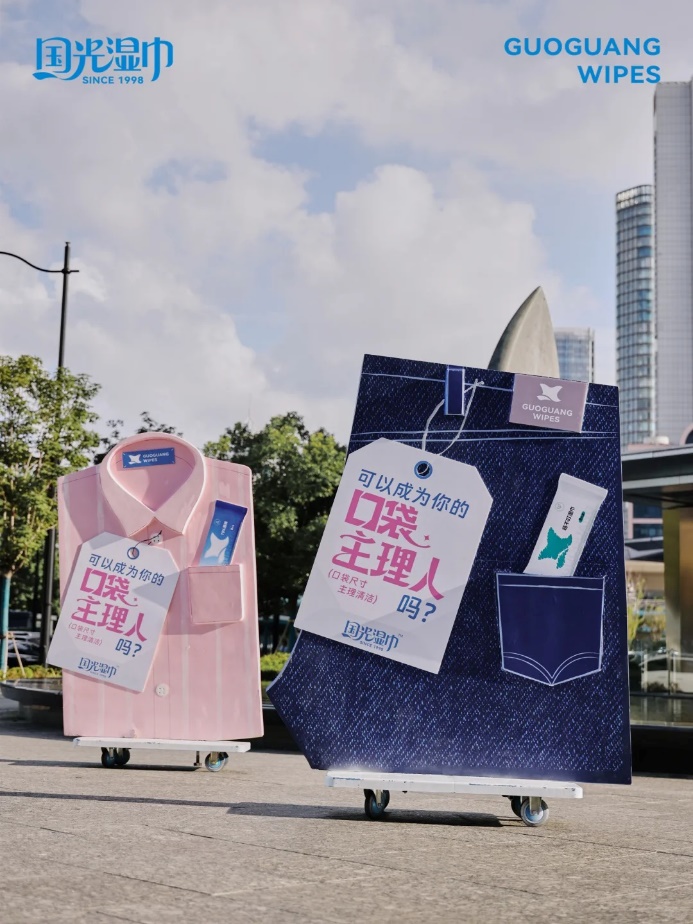 7月,国光湿巾完成品牌升级,从代工业务转向面向消费者的自有品牌,并创新设计了口袋大小的迷你型湿巾。近日,为将这一核心优势趣味化、戏剧化地传达给消费者,国光推出「口袋主理人」活动,并在线下举办了一场别开生面的「口袋发布会」。