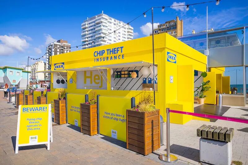 此外,宜家在布莱顿的海滨设置了弹出式柜台,为那些被海鸥抢走薯条的居民提供免费薯条袋和“薯条失窃保险”。