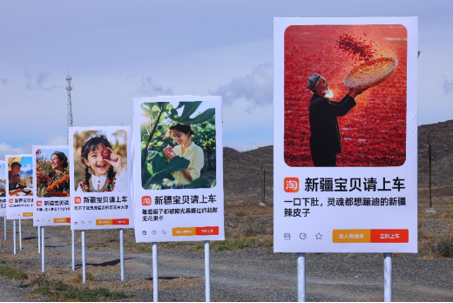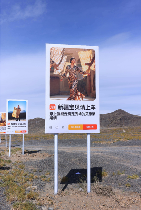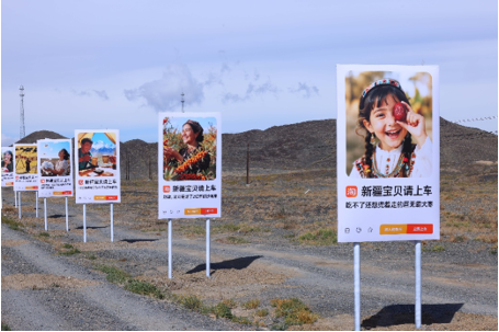 你知道吗?新疆有条路叫宝贝路,不少人喜欢拿着自己的宝贝到这条路打卡。而这个国庆,淘宝联合杭州市援疆指挥部、阿克苏市商务局、新疆电商协会、阿里巴巴公益以及飞猪旅行,在这条公路旁立上了一个个广告牌,这些广告牌上印的不是别的,正是来自新疆、在淘宝上售卖的各种「宝贝」。