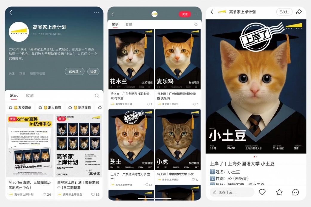 每一只由此「上岸」的猫咪,都会成为高爷家猫粮的“代言喵”,都将获得高爷家为期一年的猫粮支持。