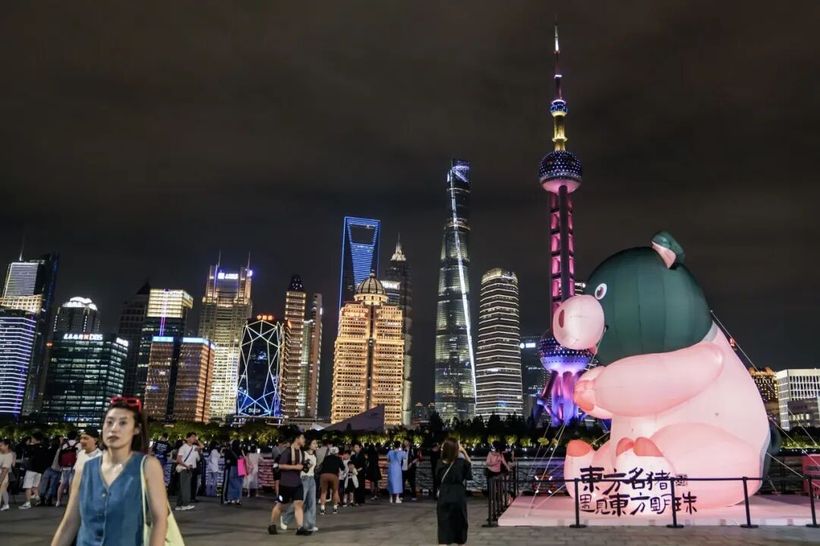 巨型两头乌装置闪现北外滩空地,错位视觉拥抱东方明珠!