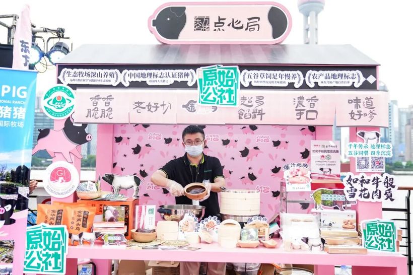 现场设有“东方名猪尝鲜铺”,知名六大金华两头乌品牌商家入驻,现制传统两头乌猪肉美食,充分吸引众多观众驻足试吃打卡、现场购买。