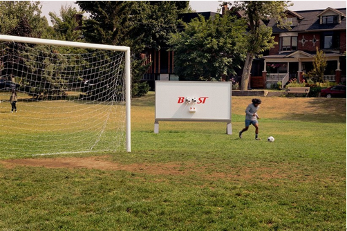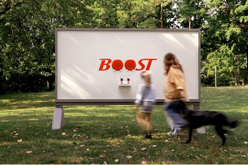 在街头投放的每一块 BOOST 广告牌都暗藏巧思,品牌标志里的两个 “O” 直接被运动器材取代。可以看到,健身房内增设了举重杠铃片、球场上摆放了足球、公园里放置了飞盘,这些物品均向加拿大人免费提供,大家可随意取用、体验,甚至直接带回家。