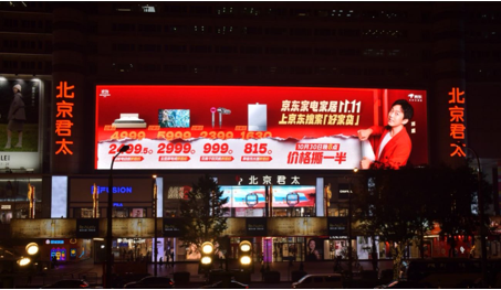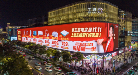 首先,在六大核心商圈部署巨型 LED 大屏,以「京东价格撕一半」的视觉冲击实现广泛覆盖;