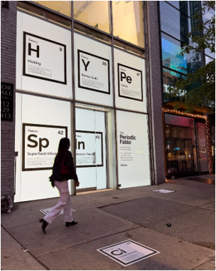 认真看,49个符号都与化学元素毫无关系——它们对应的是美容护肤行业内常见的误导性术语,如“无毛孔”、“医用级”、“冷冻溶脂”、“永葆青春”等。