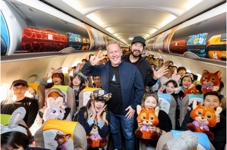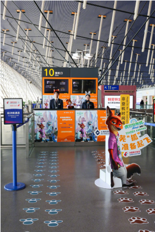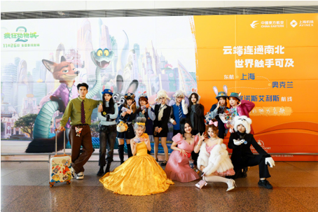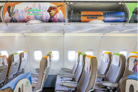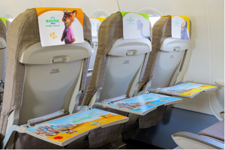 《疯狂动物城 2》上映前夕,中国东方航空与迪士尼影业联合推出「迪士尼·疯狂动物城号」主题彩绘飞机,并于 11 月 19 日在上海浦东机场完成首航。主题航班从上海浦东飞往北京首都机场,151 名旅客率先体验了这场连接地面与云端的「空中奇旅」。
