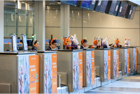 围绕「疯狂动物城」这一热门 IP,东航打造了贯穿「航站楼—客舱—空中旅途」的全流程沉浸式体验。浦东机场 T1 航站楼的 B 岛值机区、自助设备、爱心服务区、登机口等多处场景均以「疯狂动物城」元素装点,吸引不少旅客争相打卡。
