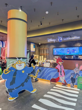 瑞幸还在上海、广州、杭州等多个一线城市布局了主题门店,设置角色立牌,让消费者仿佛置身电影场景中,进一步打通“线下体验-线上晒图”的传播链路。