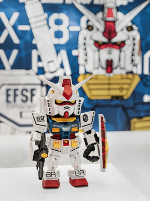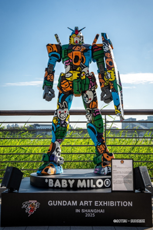 AAPE 联名立像将 MOON FACE 标识、招牌绿色迷彩和「AAPE UNIVERSE」标语等,无缝融入硬朗刚毅的未来感机体线条中。围绕吉祥物 BABY MILO® 为主角打造的联名机体涂装缤纷多彩的家族好友印花,形成硬核与可爱并存的反差萌感。覆盖粉色爱心迷彩的 APEE 联名立像则为机体轮廓注入甜美气息,在高达美学与甜美活力之间找到完美平衡点。