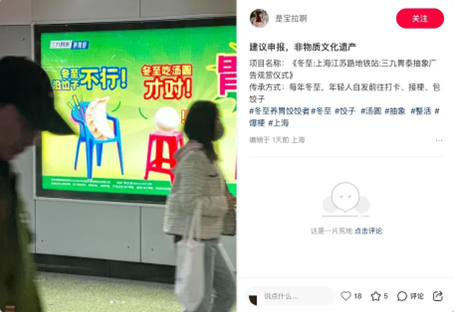 有个网友锐评:“建议申报,非物质文化遗产”因为每年冬至这段时间,三九胃泰就以极其抽象的精神面貌出现在地铁站里。。三九胃泰地铁广告出圈,疑似“60后老编”上岗?