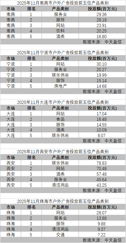 1、以上数据以中天盈信指定的收集范围为统计对象