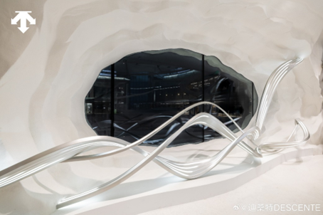 沿着莫比乌斯环所构建的连续动线,迪桑特将整座旗舰店划分为四个彼此独立又相互呼应的主题空间——「专精之域」「BLANC 之境」「高球专区」「儿童空间」。不同于传统零售中的品类划分,这四个空间围绕运动体验在不同阶段中的感受与需求展开,从对运动本源的感知唤醒,到专业能力的集中呈现,再到匠心工艺的沉淀与代际传承的想象。