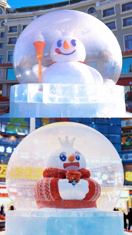 除了延续去年的雪雕方阵,蜜雪冰城还新增了带滑梯的雪王冰雕城堡、4 米高水晶球以及 18 米高的「雪王」巨型雪雕,并贴心推出打卡攻略,邀请游客感受雪王的甜蜜暴击。