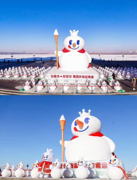 继去年蜜雪冰城在哈尔滨安排了雪雕版的雪王方阵之后,今年雪王卷土重来,继续在哈尔滨开疆拓土,拓展自己的冰雪势力,直接将城市爆改成蜜雪「滨」城。