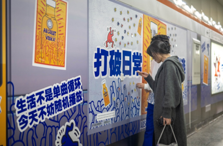 每天卡点进站、刷卡、候车、进车厢—这高度重复的动作,构成了当代打工人日复一日的通勤切片,也成了情绪最易淤积日常场景。正是精准捕捉到这一真实而普的“困局感”,SMK作为本次战役的LEADING AGENCY,为ABSOLUT HARING联名艺术瓶进入中国市场,策划了一场名为「打破日常·绝对出逃」的情绪唤醒事件。