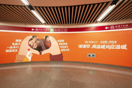 最后,这份活动还从线上扩展到了线下,滴滴充分利用了地铁长廊的区位优势,将其打造成一个被温暖细节包裹的品牌空间。行色匆匆的都市人穿行其中,不经意间便与这些真实的故事相遇,完成了对品牌情感的沉浸式感知。