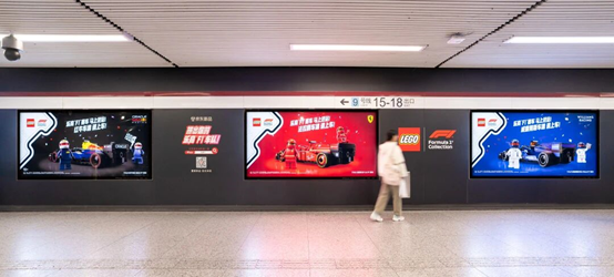 徐家汇作为通往上海赛车场的必经之站,也被乐高®打造成了为 F1 应援的第一站,各大车队的乐高 F1 赛车积木模型与身着队服的车手人仔列队亮相,红、蓝、橙、绿的车队配色在站厅间交织,扑面而来的赛道氛围感瞬间拉满。