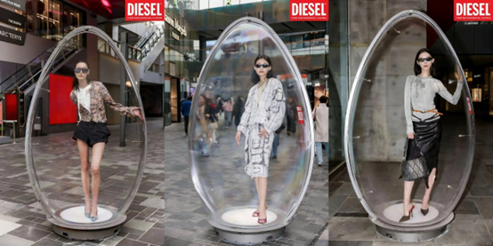 最近,三里屯突然出现了一批站在透明蛋壳里的模特,她们身着时尚服装和来来往往的用户进行互动,一极具视觉冲击力的场景迅速在小红书等社交平台引发热议,成为京城最新的潮流打卡地。实际上,这是国际丹宁品牌 DIESEL 特别打造的装置艺术,作为《彩蛋寻宝》中国首发站,该活动本质是对今年年初 DIESEL 在米兰时装周上颠覆性发布形式的本土化致敬与延续,旨在将秀场从封闭的精英空间彻底推向开放的公共街头。