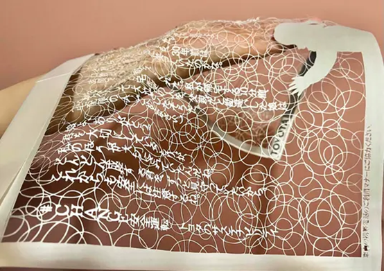 广告的视觉灵魂,是一件由 516 个汉字组成的剪纸孤品,由剪纸艺术家坂下奈美历时120小时纯手工创作。