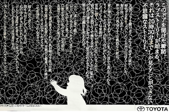 在江之岛电铁等地铁场景中,丰田将这件孤品原样呈现在乘客眼前。在嘈杂的通勤途中,这种细腻、沉静且不可复制的艺术感,让“观看广告”本身,变成了一次关于安全驾驶的深度沉思。