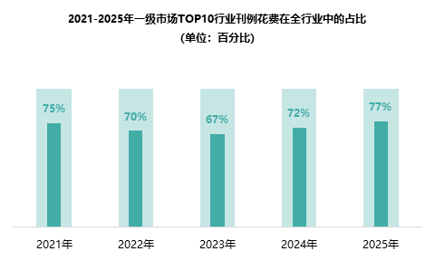 这一变化背后是市场竞争格局的重塑,2022-2023年的预算收缩期,中小行业凭借灵活投放获得展露空间,稀释了头部行业份额;而修复期后,头部行业凭借更强的资金实力与品牌议价能力,优先锁定高触达户外媒体资源,进一步挤压了中小行业的生存空间;同时户外广告市场的资源持续向一线城市集中;最终推动TOP10行业2025年集中度突破前期高点。