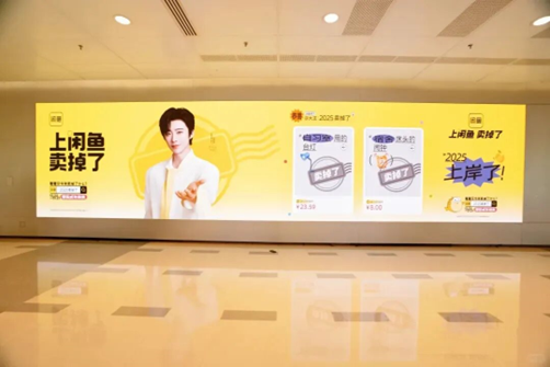 创意精准抓住 “闲鱼” 与 “翻身” 的天然谐音关联,将地铁站名、品牌精神与大众心理期许高度融合,一句 “闲鱼翻身” 既贴合平台气质,又戳中年轻人渴望逆袭、转运、重启生活的心理需求,自带祝福感与传播力,让海报从单纯广告升级为城市情绪打卡点。