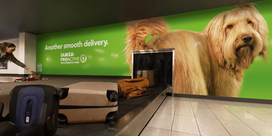 3月29日,美国宠物食品品牌IAMS根据这点,在奥兰多桑福德国际机场投放了一组创意广告《Another smooth delivery》。delivery一语双关,既表示行李运输流畅,也表示宠物排便通畅。